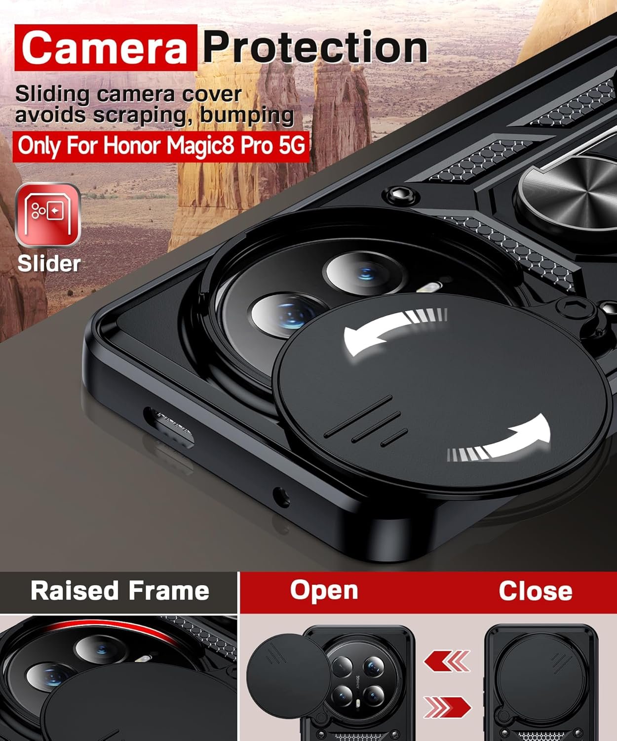 Case Honor Magic 8 Pro – Protector de cámara y soporte mágnetico