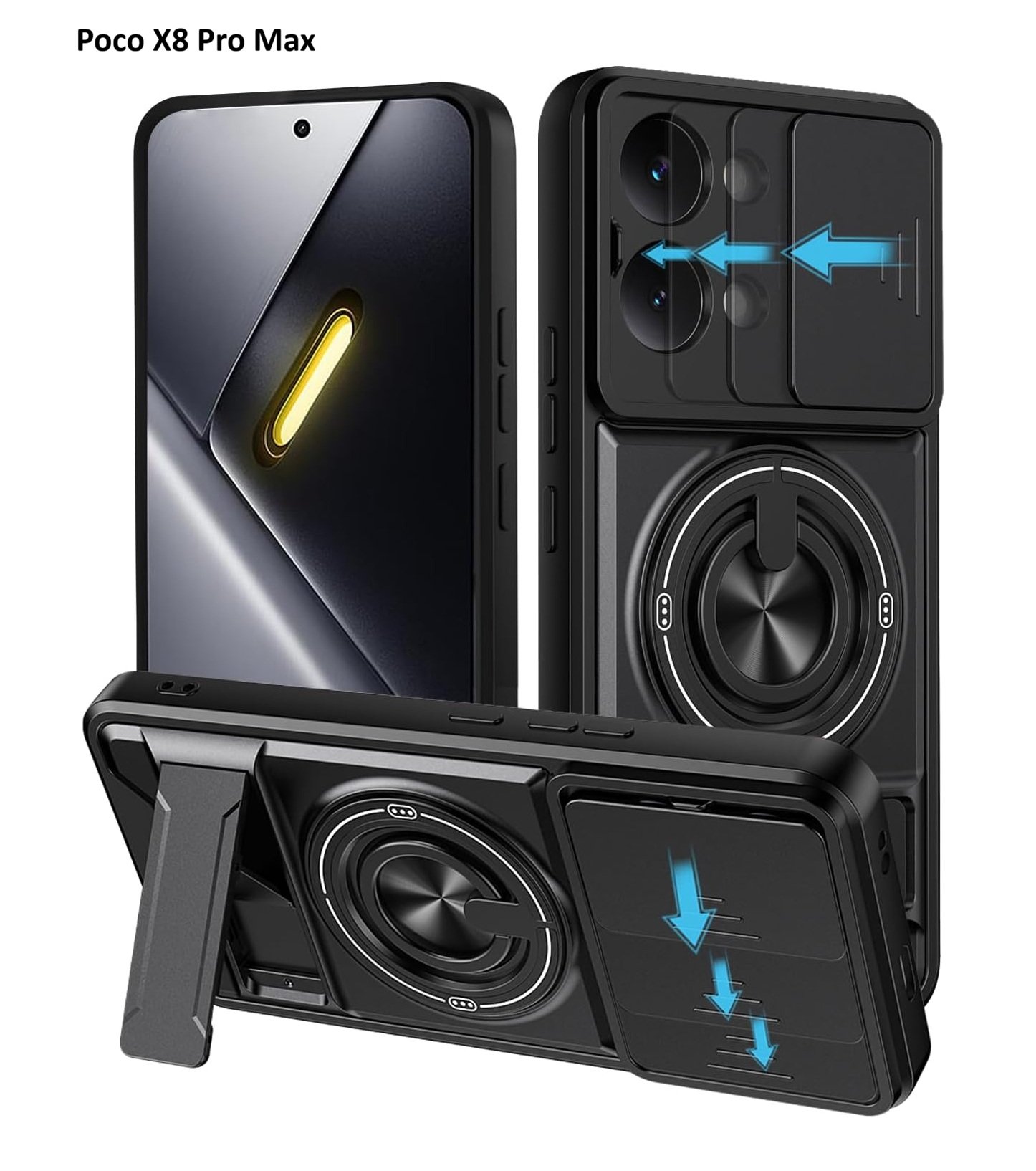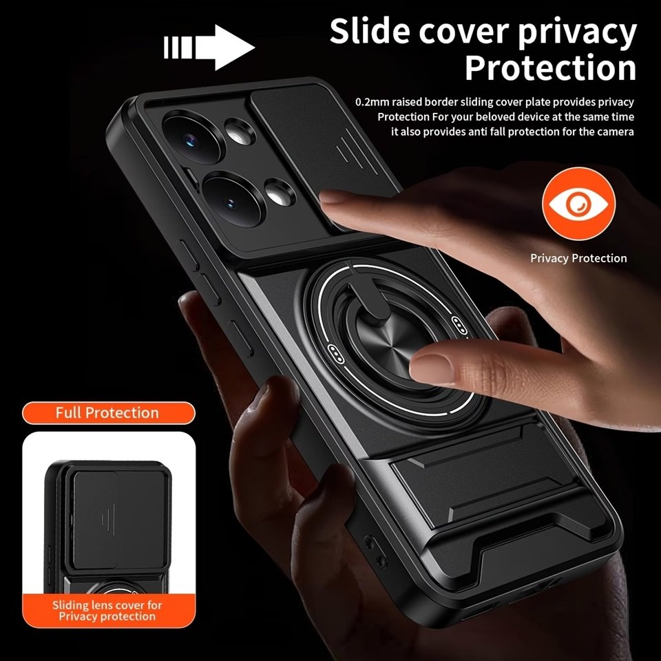 ✅Carcasa Protectora Premium para Xiaomi Poco X8 Pro Max – Diseño Elegante con Tapa Deslizante para Cámara y Soporte Magnético 360°.